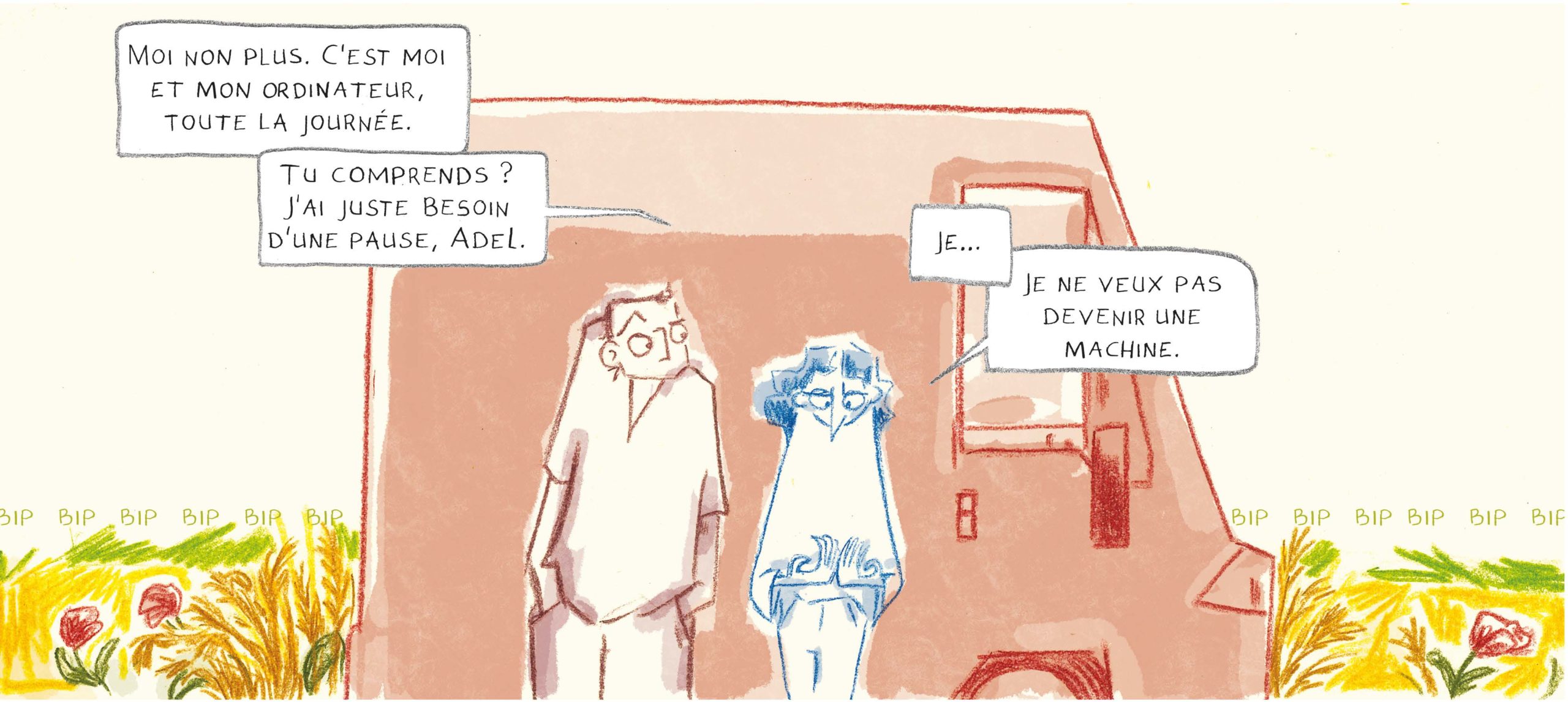 À travers le parcours et les questionnements de Marie, Un grain de sable dans la machine explore l’emprise concrète des technologies sur nos vies, ainsi que leurs conséquences sociales, écologiques et politiques.